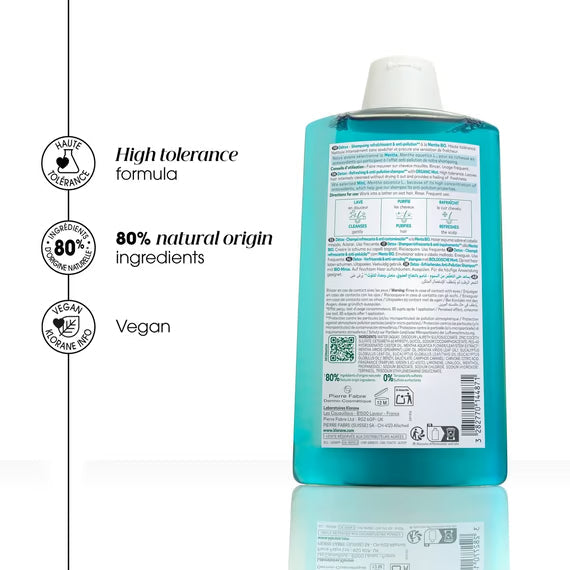 Organic Water Mint: an extract, rich in antioxidants, that has been scientifically proven to have anti-pollution properties on the scalp and skin.
