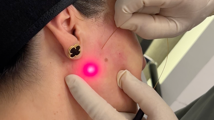 The laser fiber is gently inserted beneath the skin to deliver heat energy, which melts small fat deposits and tightens collagen fibers, resulting in immediate and ongoing skin contraction.